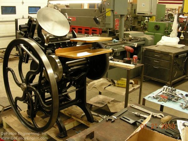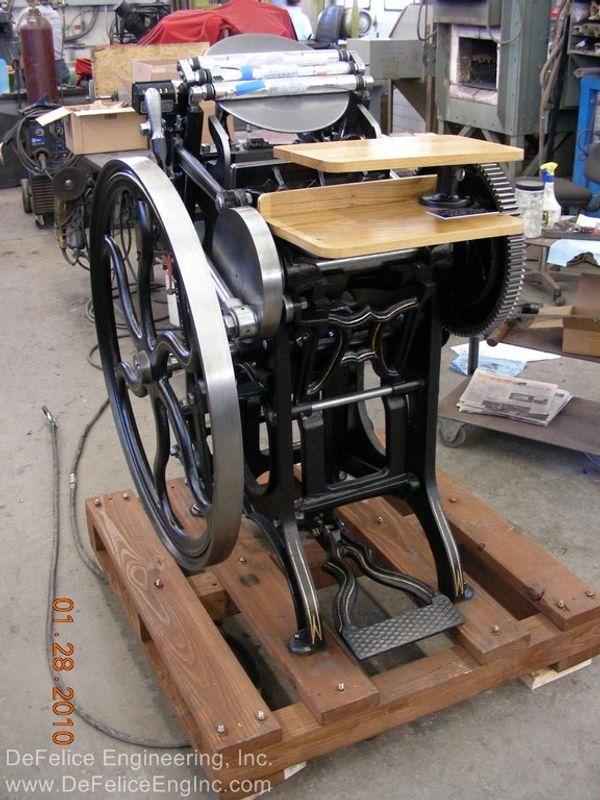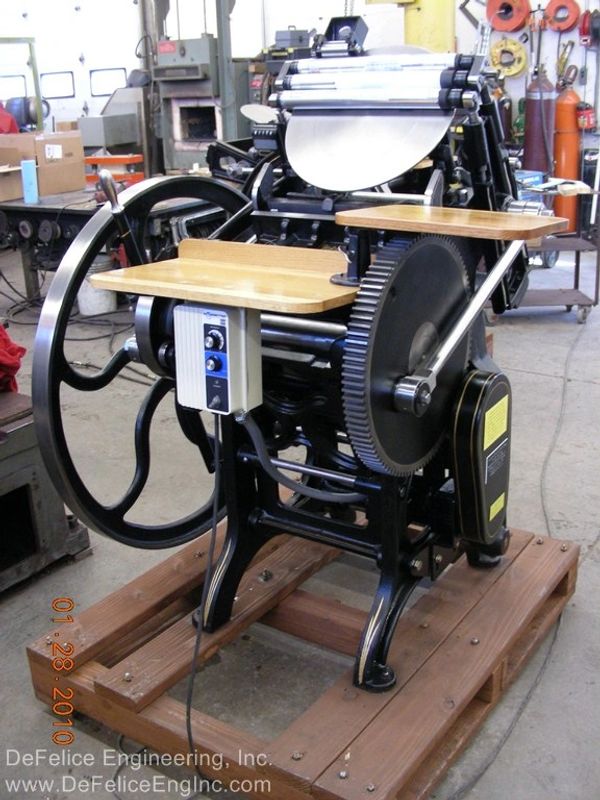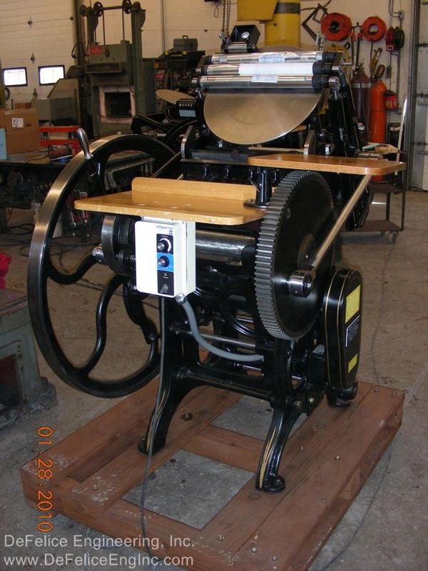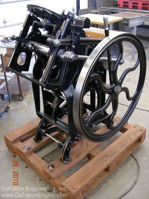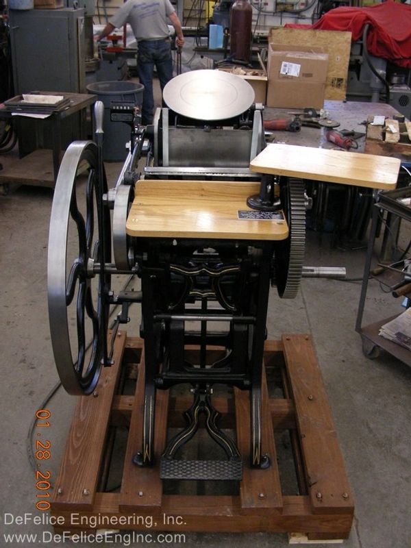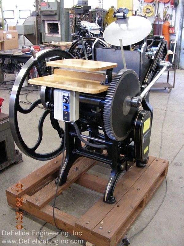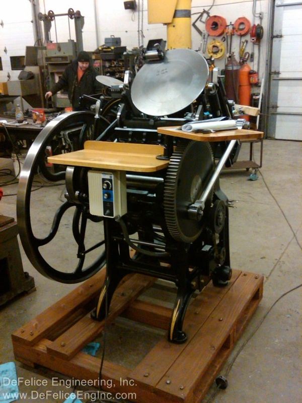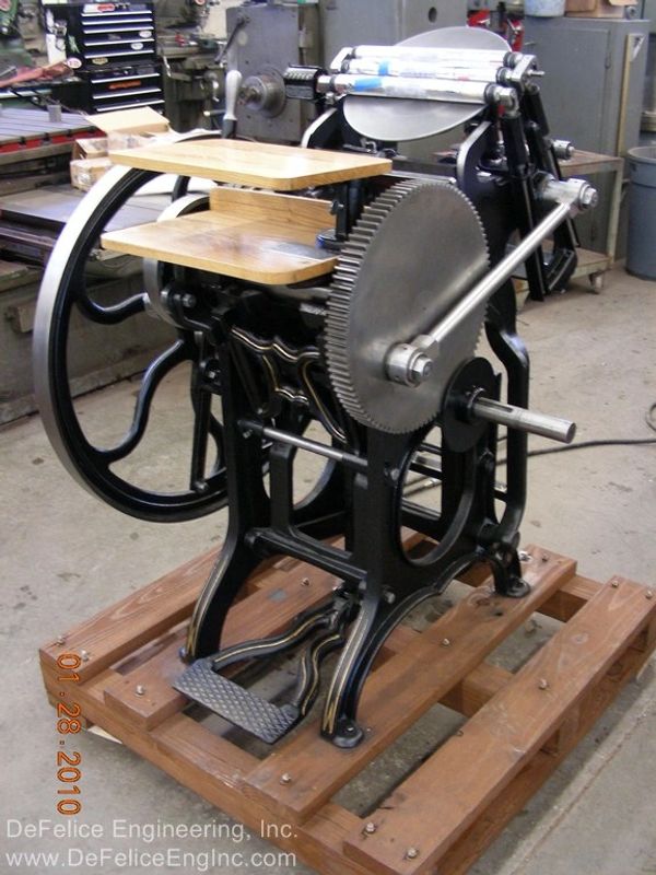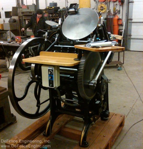 "It is not my intention to restore these machines to show, or museum quality. It is my intention to re-work, as necessary, a 100 year old versatile piece of printing machinery, and to give it possibly, another 100 years of life. As a designer of machines and lover of old machines, especially these that oscillate, reciprocate, slide, rotate and clink; it warms my heart to bring back to life these cast iron masterpieces."