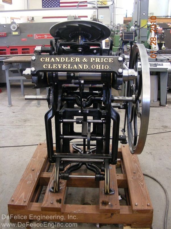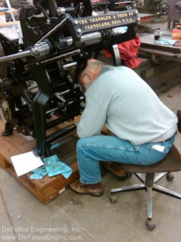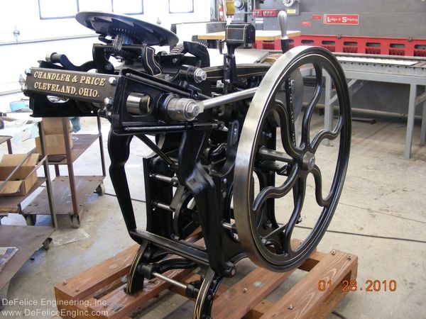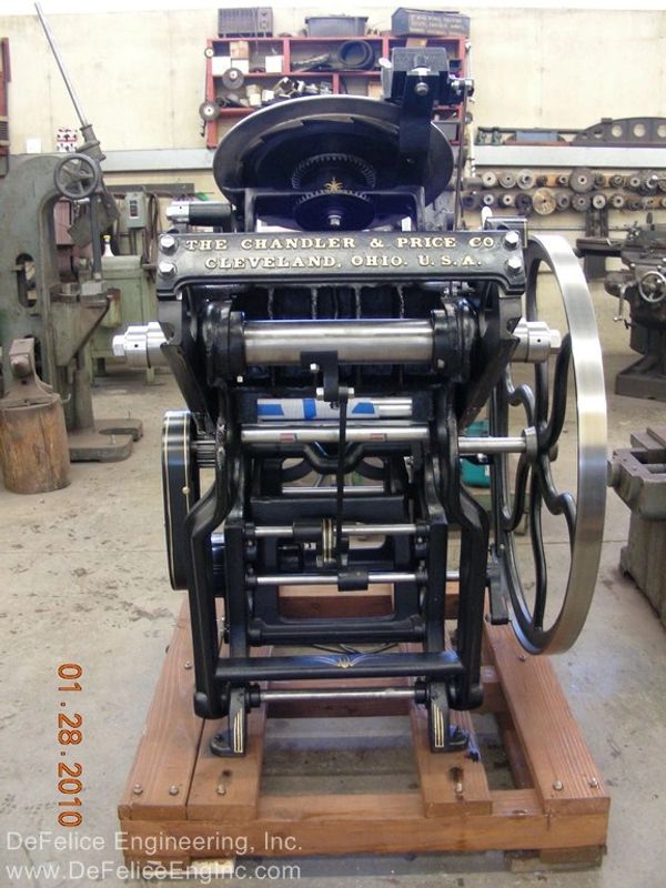 Our experience in machinery restoration really aided us I the restoration of the first two presses. So far we have restored ten Chandler and Price printing presses.